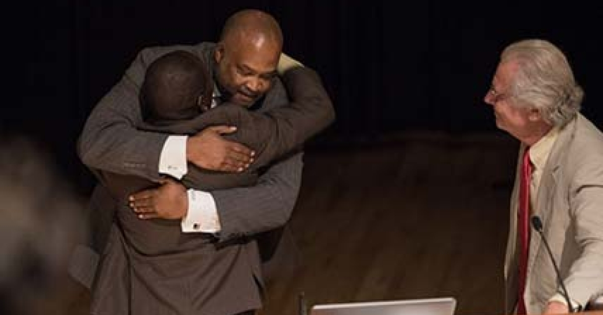 UHI director Bob Blum, MD, PhD, MPH, explained the significance of the award before presenting it to Turnaround Tuesday co-directors Terrell Williams and Melvin Wilson at the annual Henrietta Lacks Memorial Lecture held at the John Hopkins Medical Campus.
